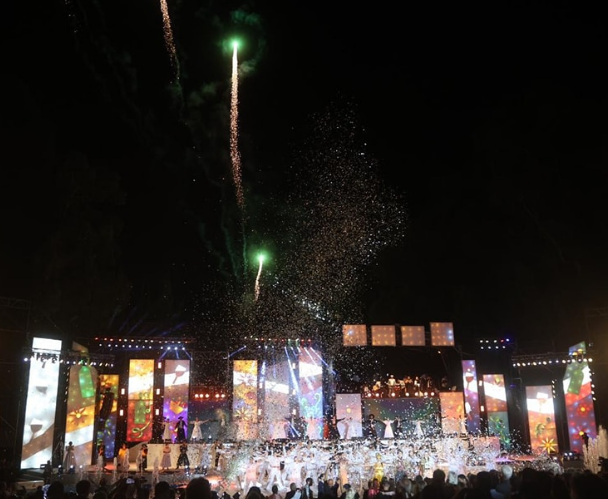Esta fiesta sanrafaelina fue diferente porque, debido a la reprogramación por las alertas de tormenta, la Bendición de los Frutos se hizo unos minutos antes de que arrancara el acto central del espectáculo llamado El Origen.