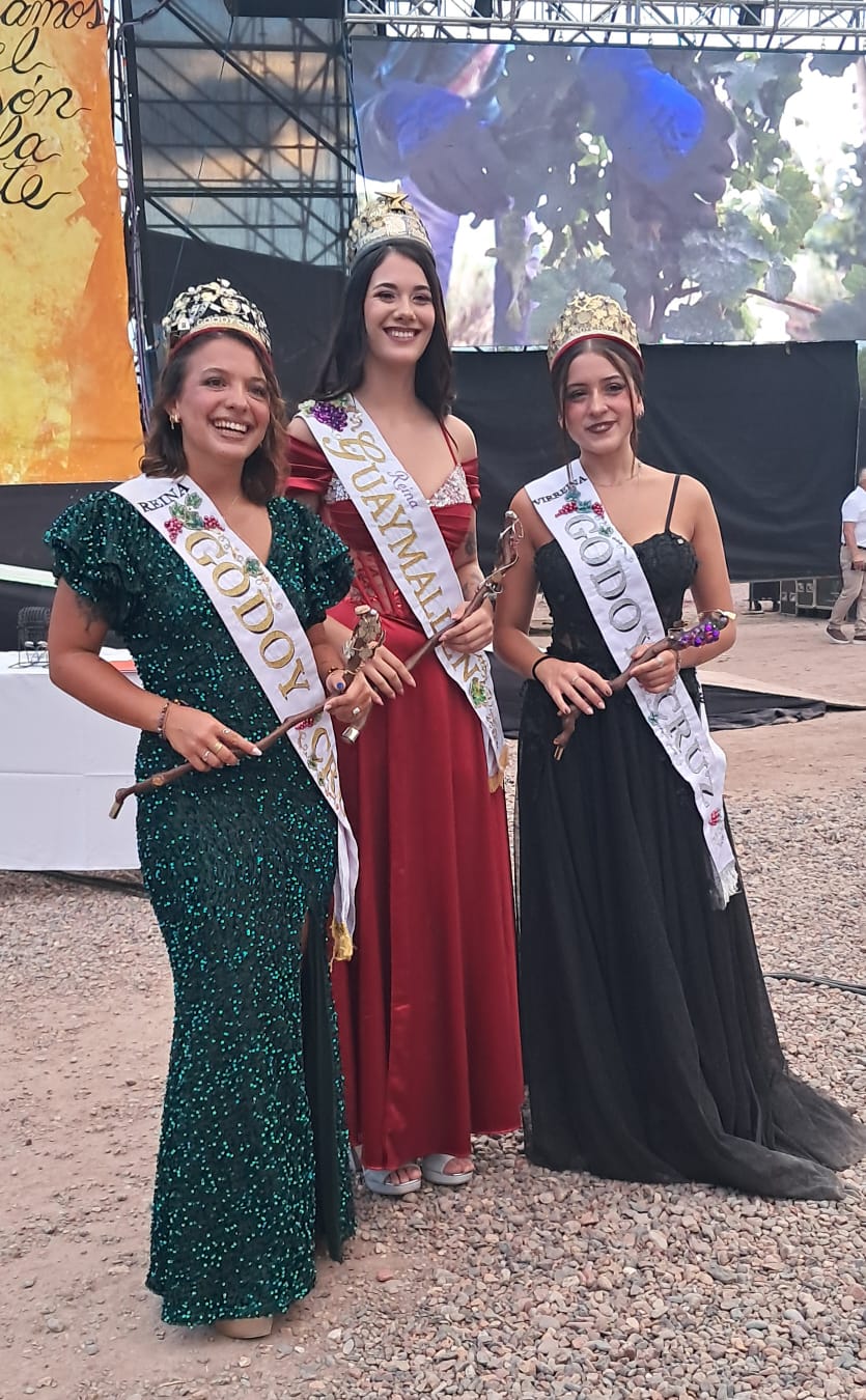 Alejandrina Funes y el intendente LoprestiSoberanas actuales y nuevasReinas 2025: Olvia Chretien, Julieta Renzi y Juliana ZalazarReinas 2026: Javiera Bravo y Azul AntolínezReina de Guaymallén Victoria SeguraMix de reinasReinas 2025: Sofia Perfumo, Alejandrina Funes, Juliana Zalazar
