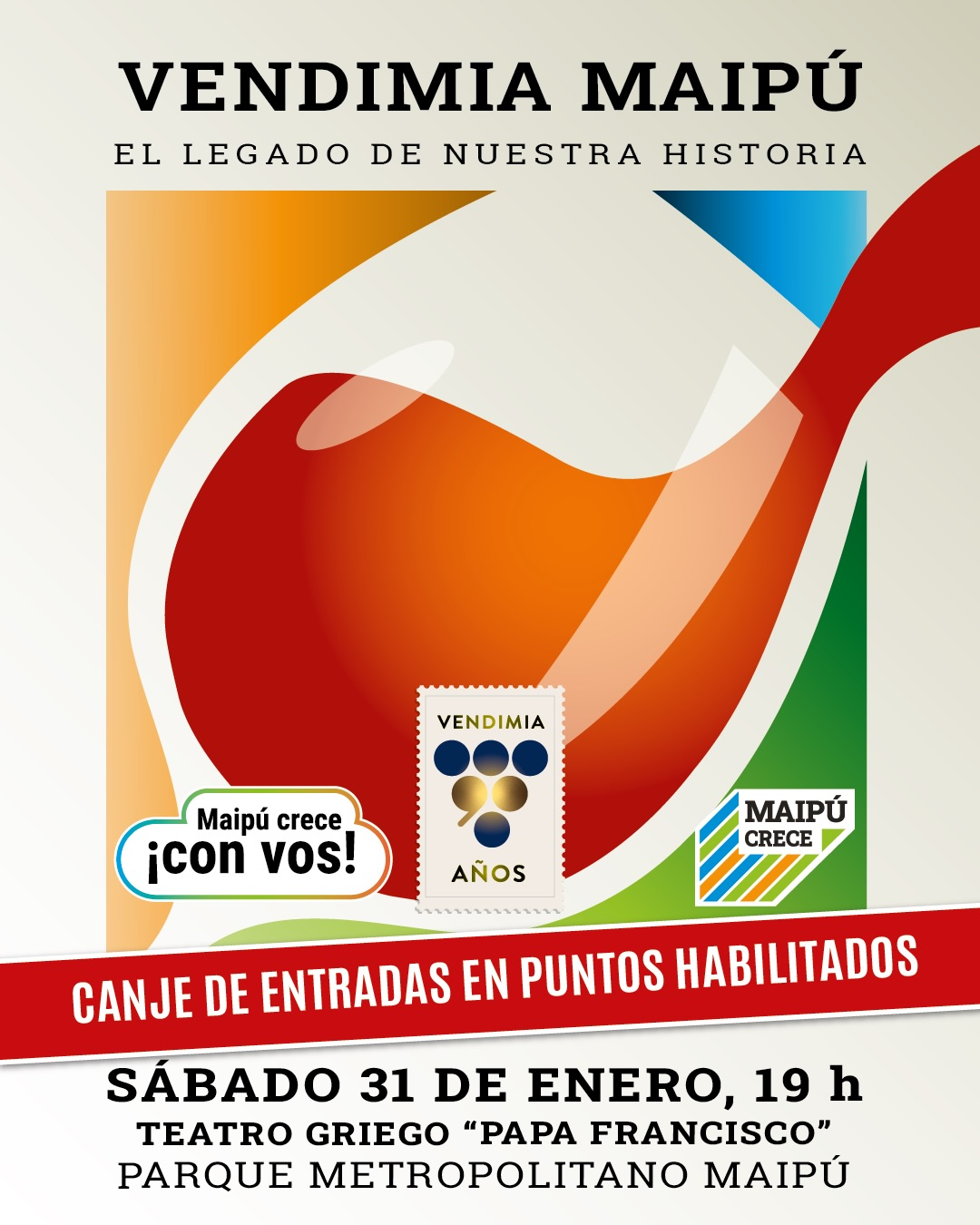 La celebración vendimial de Maipú: “El legado de nuestra historia” se realizará el sábado 31 de enero desde las 19 horas en el Teatro Griego “Papa Francisco” y contará con la presentación del reconocido grupo musical Agapornis, que aportará su impronta festiva a una noche pensada para disfrutar en familia.