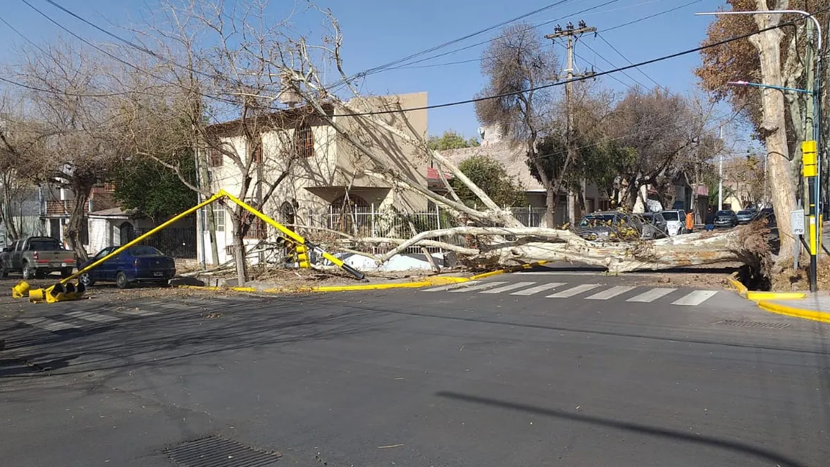 Pero pasadas las 15, varios departamentos del Gran Mendoza comenzaron a tener cortes de luz, debido a que las fuertes ráfagas que llegaban al llano fueron volteando árboles y postes de luz, por lo que se vieron afectados los tendidos de los cables que llevan la electricidad.