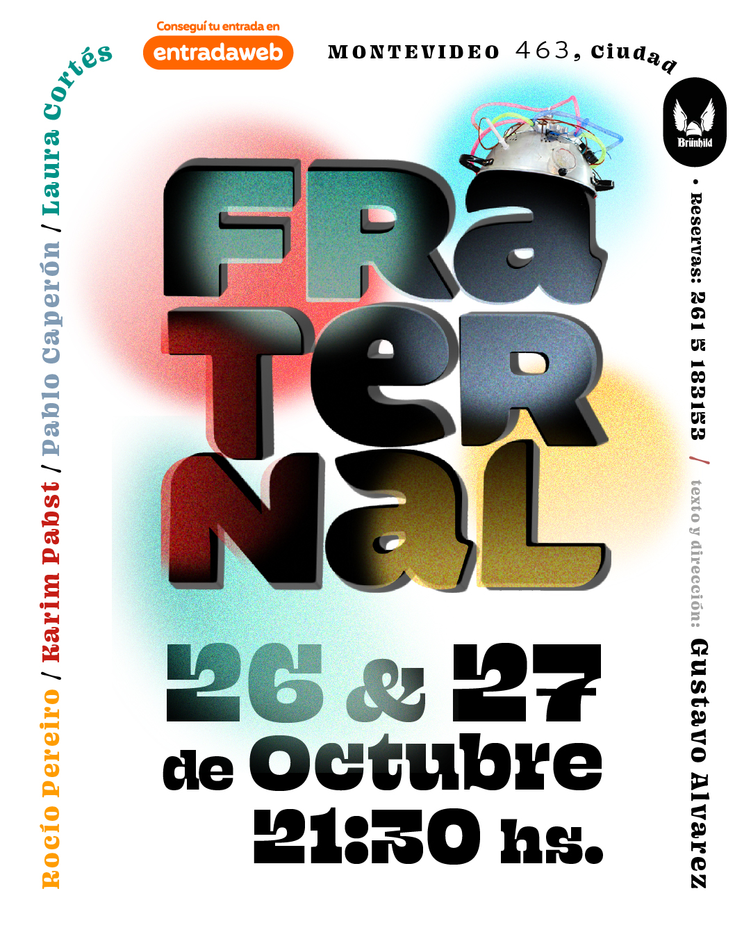 Luego de una exitosa primera temporada y su participación en el Festival de Estrenos de la Ciudad de Mendoza, vuelve FRATERNAL (fraternal.teatro), un delirio trágico del Géminis Argento, a la escena local. El próximo sábado 26 y domingo 27 de octubre a las 21:30 hs son las funciones que abren la nueva cartelera de una experiencia de teatro inmersivo, en Brünhild (Montevideo 463, Ciudad) las entradas ya se pueden conseguir en EntradaWeb.